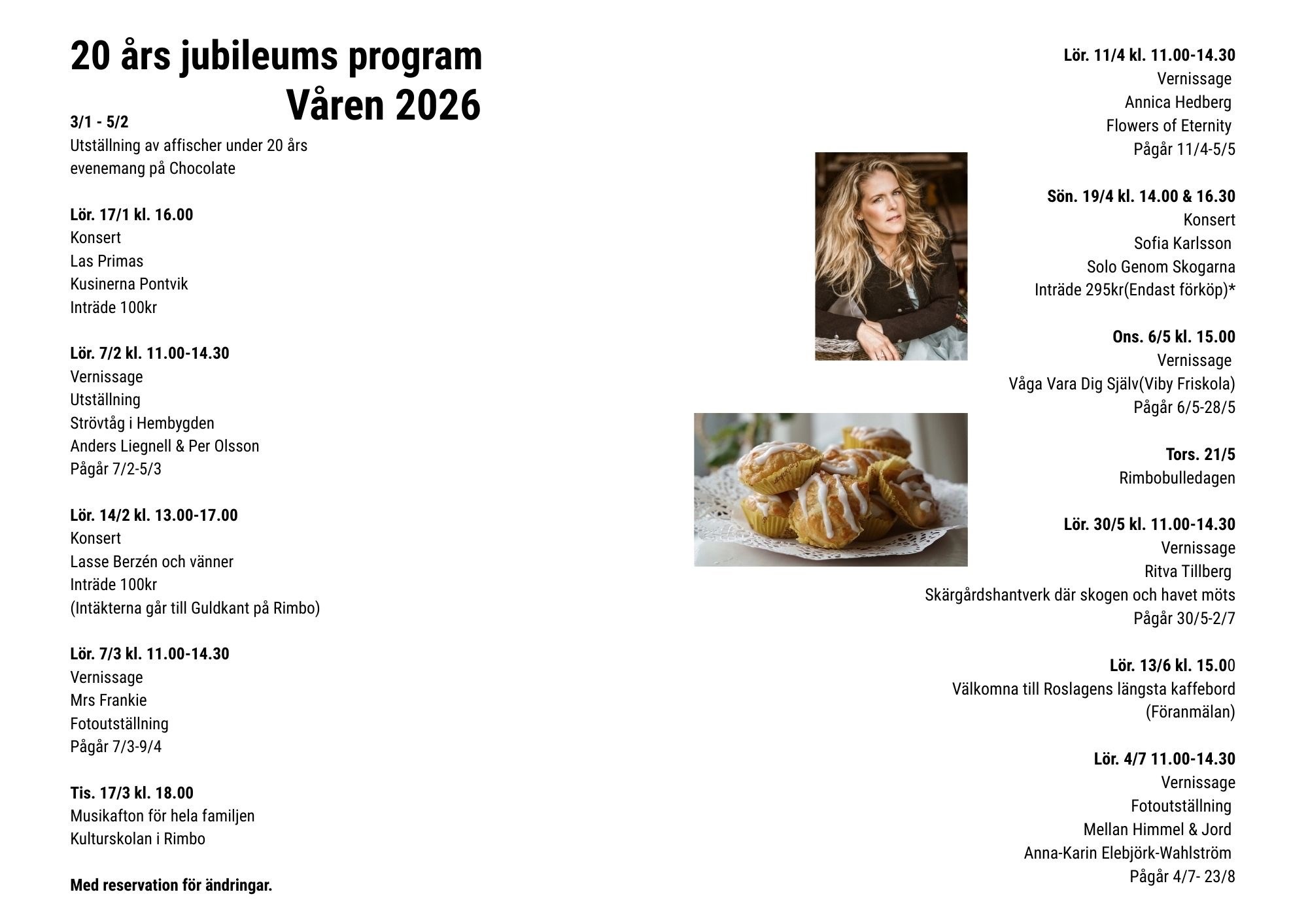 Vårprogrammet på Café Chocolate/20 års jubileum