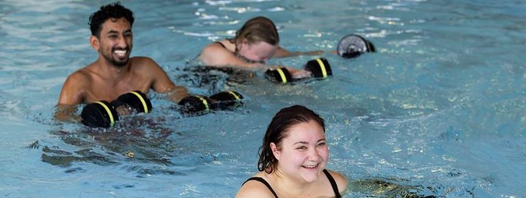 Hallstavik badhus har en 10 meter bred huvudbassäng med fyra banor som vardera är 25 meter långa. Badhuset har även en grundare bassängdel med bubbelzon samt en mindre barnpool. Vattnet är tempererat till cirka 29 grader.