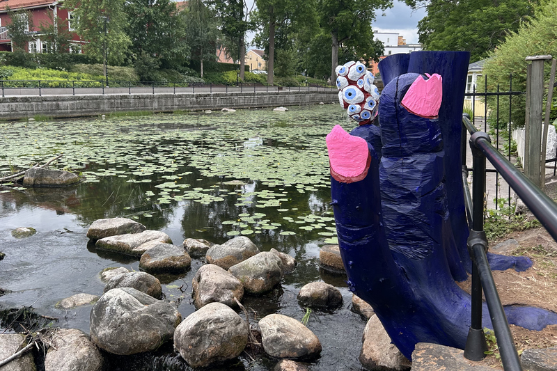 Varje sommar finns konst att beskåda utefter ån som rinner centralt genom Norrtälje stad ut i Östersjön. Konst i ån 2025 visades 27 juni – 14 september.