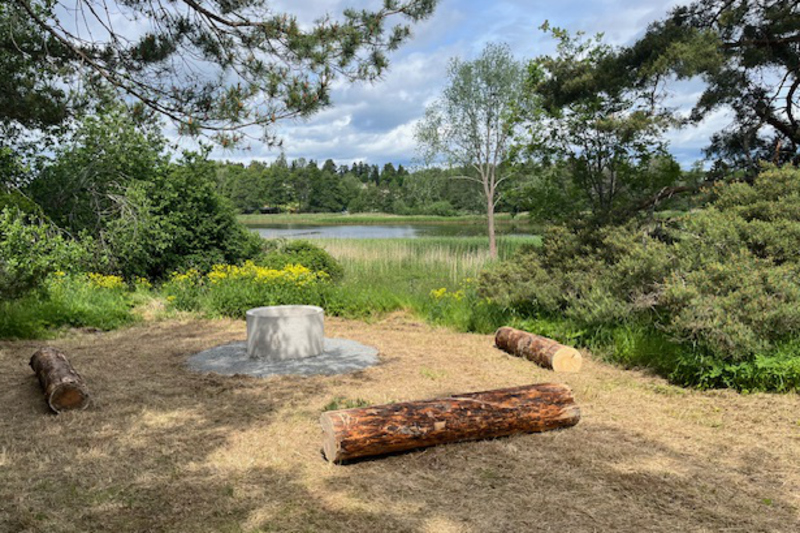 Ny grillplats och naturliga sittplatser med sjöutsikt